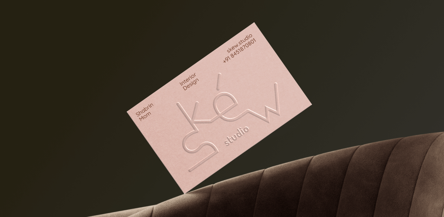 The interior design landscape feels polished but predictable and that’s exactly where bold brands have room to break through. Skew Studio came to us wanting to stand out and specifically asked for an experimental, unique brand that could visually anchor their focus on sleek, minimal, yet fun interiors. We captured their architectural philosophy by designing a custom logo that is the centerpiece of the whole brand. It was directly inspired by the arches and curves they consistently use in their designs, creating a unique mark that is a true extension of their work. The visual strategy was minimal and refined. We used a sophisticated palette of chocolate brown and warm pink. The bold logo and engaging wordplay did all the talking across every touchpoint.